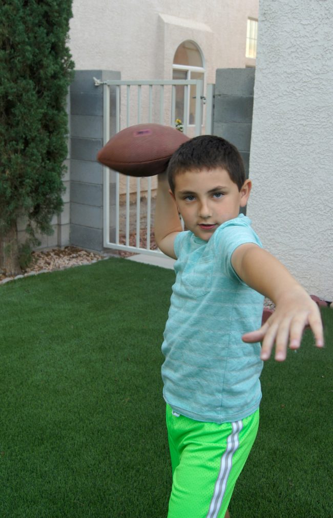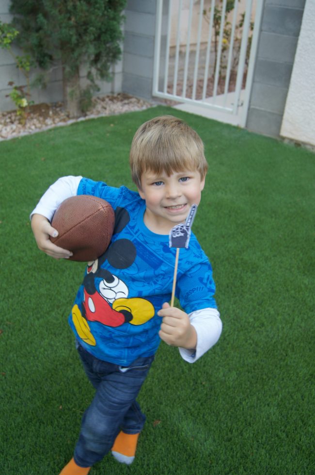 Recently, Shane learned how to play football in his P.E. class at school. We don’t have a football team here, so until he learned how to play he never really cared about it, but now he is starting to pay more attention. He has always loved watching the Super Bowl and wanted me to pull out some of our football decorations that we used when we watched the big game this year, so we turned it into a little at-home tailgate!