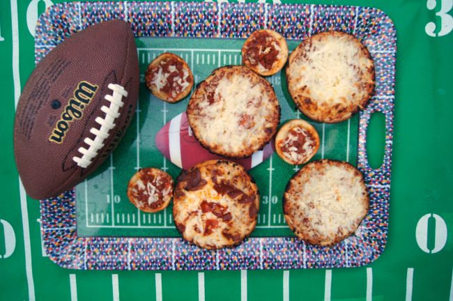 3. Offer activities to keep the kids occupied- but keep it simple. Younger kids might get bored watching the same game for hours, especially with all the commercials, so have other options for them to get some energy out. If the weather is nice enough, just take a football out into the backyard! If you have some hula hoops you can set those up for target practice, or try any variety of game you- or your kids- can imagine using footballs. If the weather isn’t cooperating, Football Bingo {with these printable bingo cards} or cookie decorating would be fun!